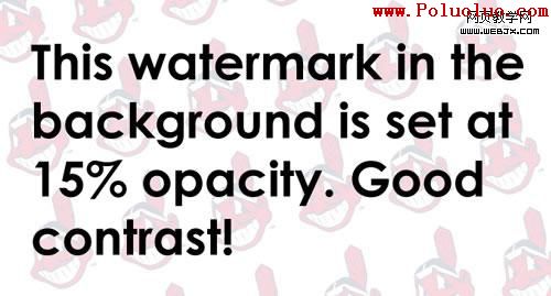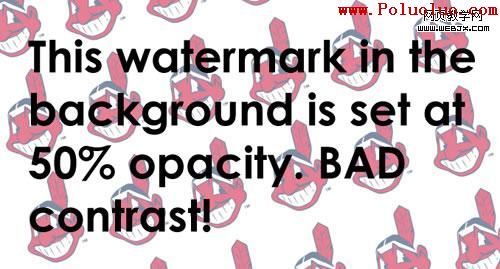 我一直會聽到這樣的問題:“當我用作背景水印的時候,我該用什麼透明度設置呢?” 我認為一個好的水印背景的透明度應該在10%-15%之間。再次說明,這都是關於在你的設計裡面保持對比。如果背景是淡色的,那麼水印當然也要是適度的淡色,反之亦然。這裡有一個關於好的水印和不好的水印的例子: