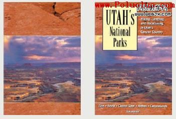 猶他州擁有令人印象深刻的國家公園,但它原來的旅游指南封面設計卻沒有傳達出該國家公園的獨特景觀,在這個封面中,峽谷、天空及背景都被擠在一個狹窄的版面上,視覺效果模糊。我們要設計的並不是什麼包羅萬有的全景圖,一個好的設計必須有一個焦點,否則這個設計就缺乏力量。看一下我們是怎樣改造的。