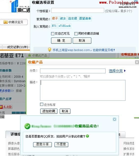 附淘寶、有啊、拍拍收藏功能部分圖: