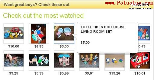 靜下心來找,發現電子商務網站利用控件Balloons(氣球狀提示)的形式的也很多,例如EBAY首頁的兩塊區域都有體現,如圖10,11。