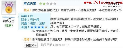 前面講到的大部分是表單上對控件Balloons(氣球狀提示)的應用,現在舉兩個在淘寶掌櫃信譽與其他網站評論上的應用,如圖8。