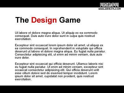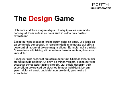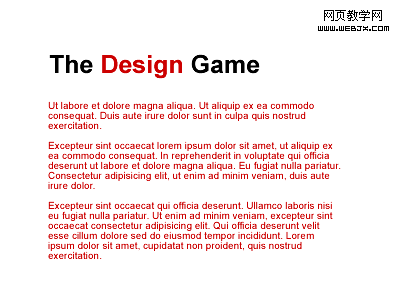 標題保持相同的對比,但是新的紅色主題讓"The Game"在頁面上得到了突出。通過給予頁面更多的紅色結構來進一步擴展和加強紅色的上下文,象下面這樣:
