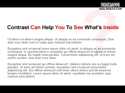 我們可以顛倒事物,通過加強黑色的上下文語境讓"design"很突出。象下面這樣: