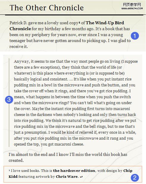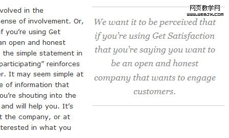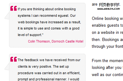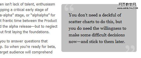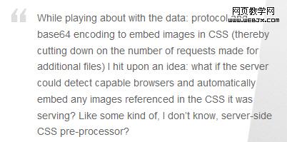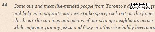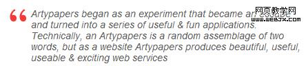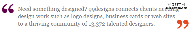 引號被用做強調文字的摘錄。由於我們需要提供一些重要標志來使用用戶注意文章中最重要的部分,盡管他們從不閱讀它。此外,引號總是被用在感謝信和有時用在博客的評論中,他們可能會被用圖形、CSS和一點Javascript風格化。有時,創造性的動態解決方案也能很好的應用。