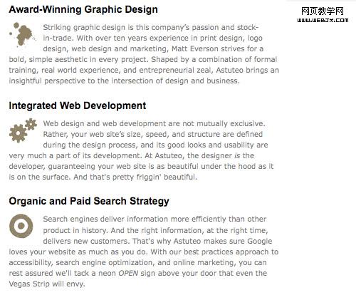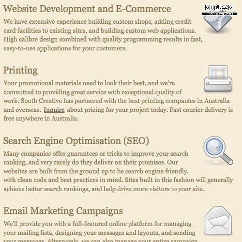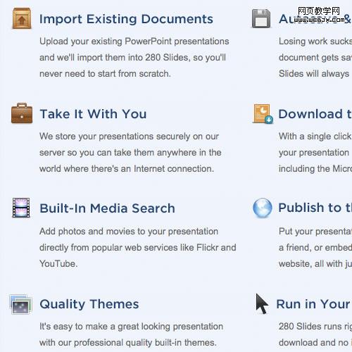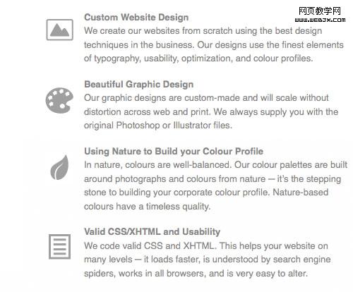 呈列服務是有效營銷中一個實用的且必須的部分。但是列表本身是無聊和乏味的。圖標結合你的功能清單將使它們更有吸引力。