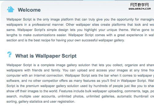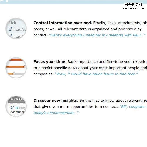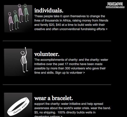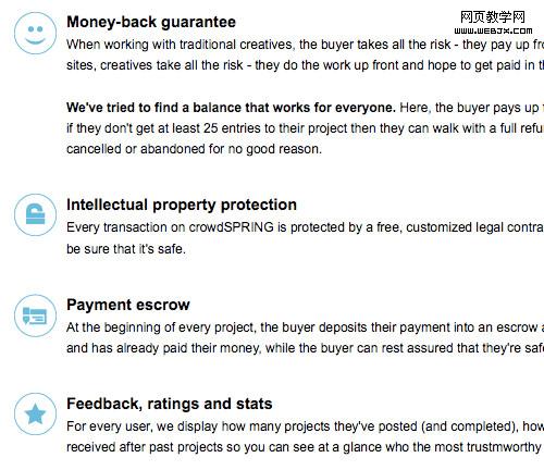 圖標和段落分隔有同樣的心理作用:他們從視覺上分開內容。一個內容格式好的頁面,圖標可使文字形成段落和突出重點,這樣即容易閱讀同時有趣的視覺效果足以長時的吸引用戶的注意。