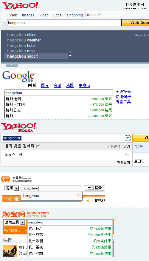 之前谷歌(Google中國)添加了對於當前輸入關鍵字的搜索結果展現,也在一定程度上讓用戶有個預知。之後很多網站(淘寶,土豆等)都效仿這樣的交互方式。