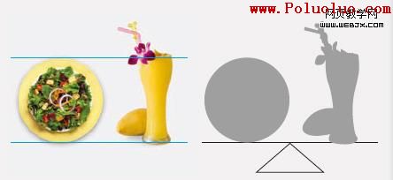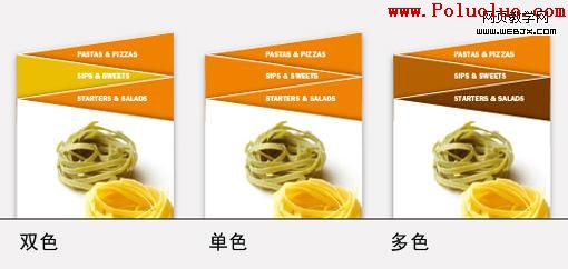 設計是通過眼睛來完成的,而不是各種所謂的教條。為了保持視覺的一致性,有時我們需要作一些小小的調整。比如,在外頁的圖片中,並沒有采用盤子的圖片,而采用了一塊甜食的圖片,但這塊甜食,其擺放的角度仍然與面條的角度一致。而杯子的圖片也顯得更高一些。剛才我們在內頁中說到四個盤子的高度及大小應該一樣,因為內頁的四個盤子形狀非常相似。但這個杯子我們必須高一些,因為它是呈高瘦形,我們所說的一致,是說“視覺份量”一致,只有將杯子的高度拉高一些,它的“視覺份量”才能與內頁的盤子一致,這個時候,相信自己的眼睛比相信尺子更重要。但字體及顏色搭配的樣式,我們並沒有改變。