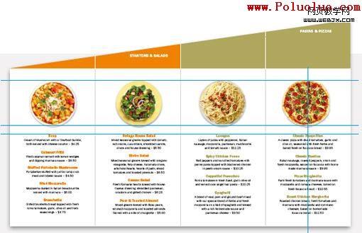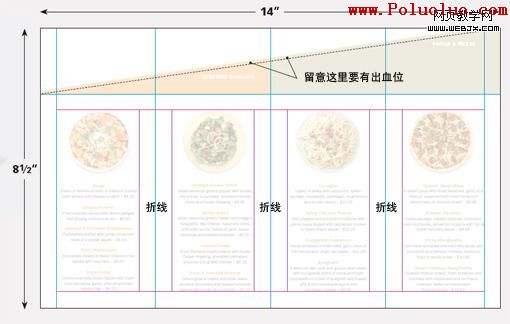 網頁制作poluoluo文章簡介:這種呈鋸齒形的單張是我們最喜歡的一種排版格式,因為你只需要一點改變,就顯得與眾不同,甚至在用桌面打印機輸出時也一樣勝任自如。將一張標准的8.5×14(英寸) 紙張(相當於216×356 mm )水平擺放,將上方呈角度切去一邊,然後按風琴折折成四個折頁。在呈鋸齒形的區