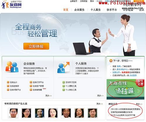 友商網的首頁的“可動”的區域有兩個:一個廣告位,一個公告。動態交互性不足。