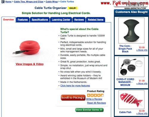 如果你想在某個搜索引擎中找到Cable Organizer,則你可能需要搜索“BEST MATCHES FOR CABLE TURTLE”。如果不喜歡搜索得到的產品詳細頁面推薦的那一款,你可以立即在旁邊看到基於相關關鍵詞的其他相關產品。這就像一個迷你的搜索結果頁,在產品頁面的右側: