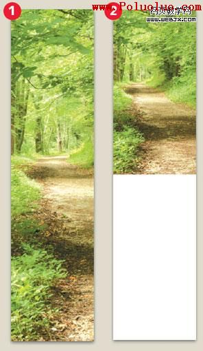 我們需要注意的是要剪切多少才能傳達出原有圖片的主要信息。上圖剪切後的圖片只占到原圖的六分之一,但它仍然能夠清晰傳達出“叢林中的路徑”的主題。但它還是太大,因為我們還有其它東西要放上去,所以……