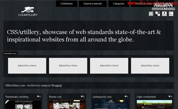 CSSArtilery是一個提供優秀CSS設計網站分享和交流的平台。在這裡你可以浏覽很多優秀的網絡設計,給相應的設計評分,發表評論;也可以提交你喜歡的或者你自己的優秀的CSS設計作品。