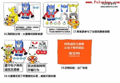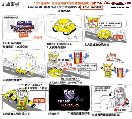 網頁制作poluoluo文章簡介:我們面臨的最頭痛問題,是如何將這個浙江省委宣傳部、浙江省教育廳等七家官方單位聯合主辦的《浙江省網絡文明公益宣傳創意大賽》FLASH動畫用平民化、網絡化的形式使到我們的受眾願意觀看,並且樂於相互傳播。與此同時也要把六個淘寶消費者保障的功能描述加入進去。