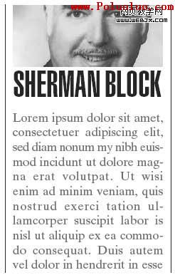 上述的圖片我們應用在一張報紙的專欄作家的排版當中,效果非常好,經過圖片處理的主角,我們都會將眼睛集中在他的整個面部上——嘴角帶點微笑,帶點酷、帶點“我知道我是誰”的自信,而名字則醒目地放在右邊,整個畫面具有某種沖擊力。