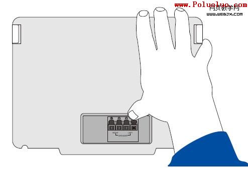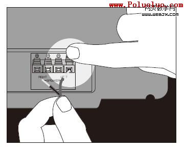 在使用示意圖的設計中,有很多元素會重復利用到。象上面三張圖片所示,我們利用第一張圖的手勢動作旋轉移動,就可以用來表達第二張圖——插第二根線的這個動作。這種重復的利用可以大大節省時間,但要注意的是,這種重復應用元素的前提是利用這些元素仍然可以清晰表達動作的含義。