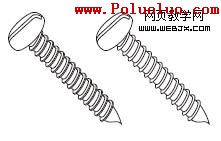 復制元素、圖案及動作非常適合用於描繪零件類的元素。象上面的螺絲釘,復制其中一個牙就可以輕易畫一個螺絲釘了。