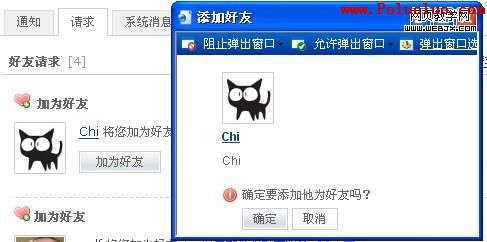 搜狐的添加好友,先是告訴我,某某已經添加你為好友了,你要添加他為好友嗎?在我點擊加為好友時,彈出一個確認框:你確定要添加他為好友嗎?