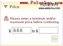 2. 在價格區域輸入框中輸入字母,點擊go後,頁面刷新,清除了剛才所填的字母,還是任何變化也沒有!!