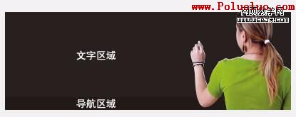 2、烘托出人物:我們在這裡將她放在右邊(為此我們只能讓她做一回左撇子了),然後畫一個矩形的“黑板”,其寬度與網頁寬度一致,然後填充上非常深的灰色(約98%)。而在下方畫一下高度很小的矩形作為導航欄,填充全黑色。