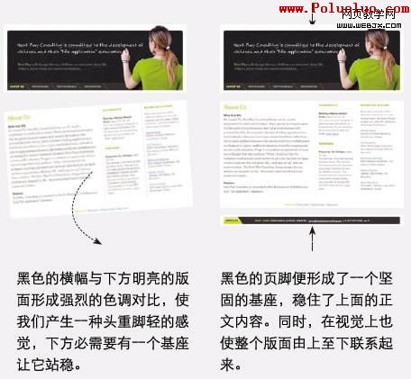 一向謙卑的頁腳往往放著一些非常重要的聯系信息文字,而且也發揮著一個視覺支撐點的作用。不要輕視它。