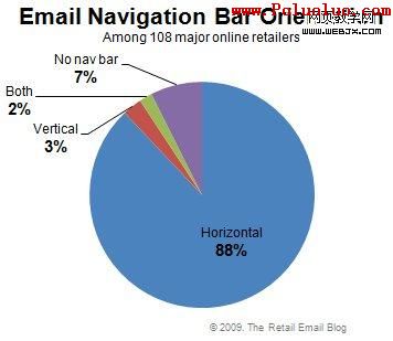 水平導航條遠遠多於垂直的,因為在郵件預覽窗格中,水平導航條更容易被完整地看到,有助於提高其效果。