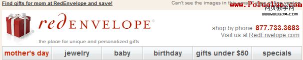 改變你的導航,還有季節性的機會。比如,在母親節到來之際,RedEnvelope在導航條裡增加了一個紅色“母親節”鏈接,作為第一個標簽。FTD和SmartBargains也增加了“母親節”鏈接,吸引對母親禮物的注意。