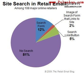 對幾乎任何網站來說,站內搜索都是一個關鍵部分,但在郵件中作用其次。有93%的主要在線零售商在郵件中放置導航條,但只有19%在郵件中包含有任一形式的站內搜索。