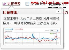這個應用還可以擴展為更高端的趨勢比較。當用戶輸入2個以上的關鍵字時,可以在指數圖中看見兩個關鍵字的對比折線圖,用戶可以對兩者搜索結果在時間分布上進行趨勢比較。