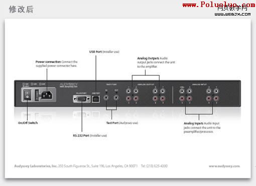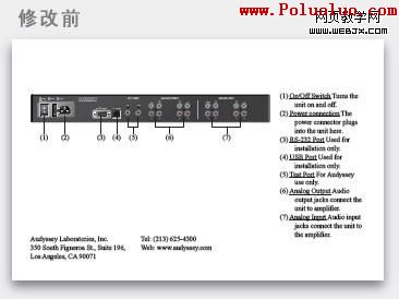 在修改後的版面中,產品顯得靠前,而且居中。我們將產品盡可能拉大,然後將各個要說明的部位用引線在其周圍說明。非襯線字體容易辯認閱讀。文字對比不強烈,整個版面顯得干淨清爽。並不需要象原圖一樣采用數字來說明。