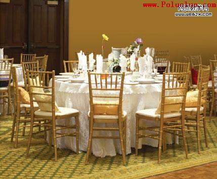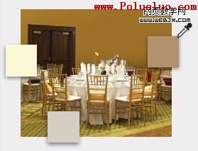 通過顏色來創造層次:深中淺三色是用吸管在這張宴會廳的圖片上取色的,我們用這三種顏色安排版面,輕易創造出層次感。深色用在圖表的上方,而另外兩種用來區分每一行。由於這三種顏色來自於酒店圖片,使到顏色直接與酒店產生了聯系。