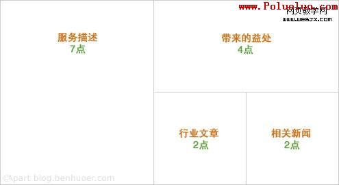 比起簡單的優先級列表,注意力地圖更為高效,因為它還直觀反映了各個目標在頁面中占據多少空間。由於“服務介紹”的點數比“益處”所占點數要高3點(幾乎是兩倍了),所有你能肯定“服務介紹”需要吸引大量更多注意力。