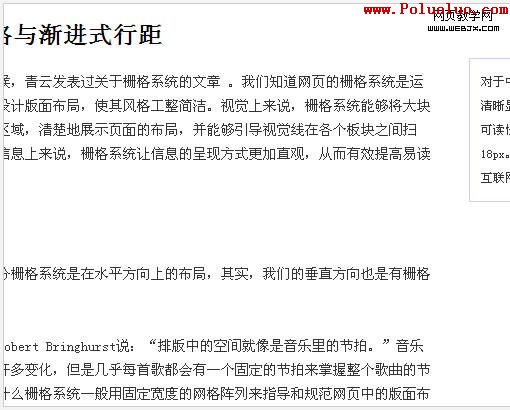 網頁制作poluoluo文章簡介:垂直柵格與漸進式行距應用舉例。