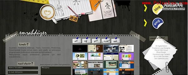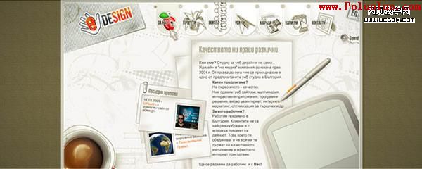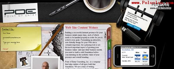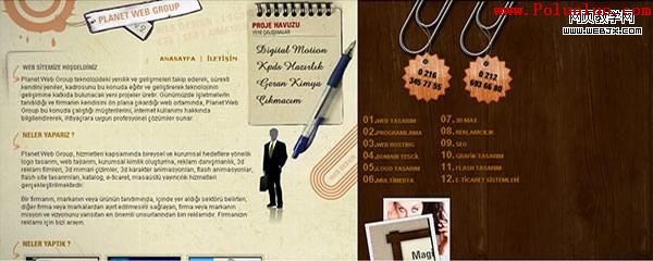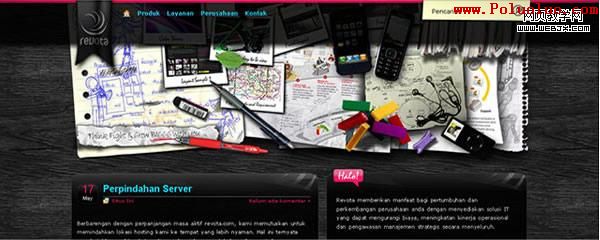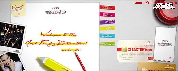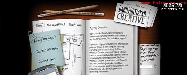 最近我發現一種有趣的趨勢,很多設計師都在使用辦公文具比如鋼筆、鉛筆、標志、回紋針、報紙雜志、書寫紙、文件持有人(document holder)以及筆記薄去設計網站。現在的設計師喜歡觀察人們如何運用及處理事物的,並將這些體驗表達在他們的設計之中。盡管這不會是一個共同的趨勢,但還是作為一種新的設計風格流行起來,隨著越來越多的設計師注意到它們,並將他們運用到自己的工作上,這種新的趨勢逐漸顯露出來了。
