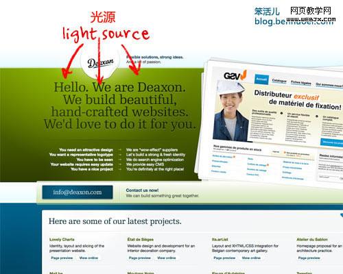 Deaxon 在logo後有一個微弱的光源,使頁面的焦點集中在了logo上。