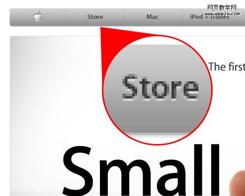Apple’s的網站 大家應該都很熟悉。不過你大概沒有注意到導航菜單底部的細微高光。正是這一高光,給與菜單以凸出感。