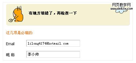 我們這裡討論的反饋僅特指用戶對網頁表單元素進行操作所得到的可視化的輸出信息,為了加強區分避免歧義,我們這裡姑且稱之為反饋提示(如圖)。這裡分幾個方面對其設計中應注意的事項加以簡要說明。