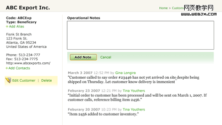 圖1,表現方式清晰顯示出主要功能——查找客戶聯系信息;其次,用戶可以編輯、刪除或者增加備注。圖2,重點是顧客和公司之間的交流;其次,用戶可以查看、編輯和刪除聯系人信息。