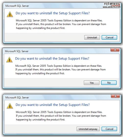 大家看得明白下面三個二次確認頁的區別嗎?——資料來自《windows vista UX guide》