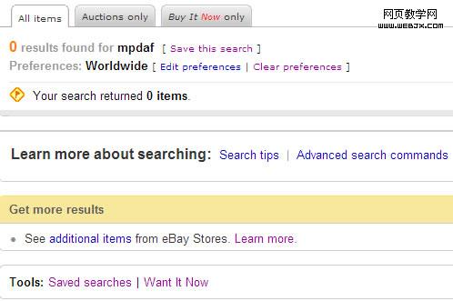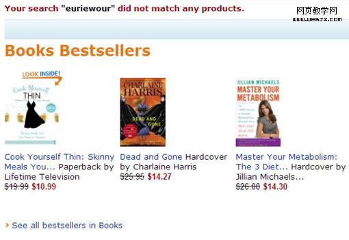 以上是國外知名的電子商務網站,先說說卓越Amazon,當它用戶搜索不到產品信息時,它提供用戶一個反饋建議的入口,讓用戶盡情的宣洩自己的不滿,打出了一張同情牌.能不能根本解決問題只有用戶自己知道......再說說Amazon,它就聰明多了,先把無結果頁面分成兩種情況:1.能盡量匹配上的就盡量匹配,提供一個推薦的搜索相近詞和相近詞的搜索結果,還有一個反饋搜索建議的入口;2.實在沒有匹配上的了,告訴用戶沒有結果,推薦一些其他暢銷商品-比如暢銷書籍.最後說下eBay,它的方式就更五花八門了,首先它會有禮貌的提醒用戶沒有搜索到結果,用戶可以選擇從結果中查詢,或者點擊高級搜索去擴大搜索范圍.最後實在找不到了,沒關系,用戶可以把自己的需求添加到商城裡讓更多的賣家看到買家的需求.可謂貼心之極.