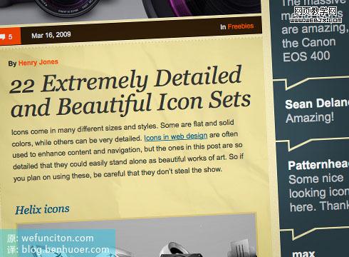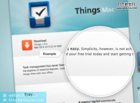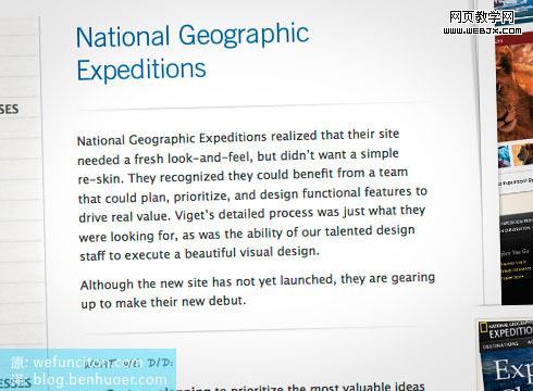 網頁設計時是否真的用心了。有時候創造奇跡的就是一些小細節,一些別人幾乎無法察覺的細節。我所說的“像素級的完 美”就是指在線條、邊緣和邊框描邊上仔細推敲。與其就用一條單一的線,不如多加一些細節。細節可以是細微的漸變,也完全可以只是一條1像素寬的細線(用作表現陰影或高光)。有了這些細節, 你的設計會大不一樣。有些設計師在這方面特擅長: Collis Ta’eed, David Leggett 以及 Wolfgang Bartelme.