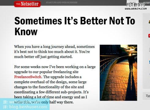 網頁設計中,標題很重要,對於博客設計來說尤為如此。最近流行在標題上使用大而粗的字體。這樣做有很多好處,不僅能提高特定內容區塊的可用性,而且有助於組織設計中的空間和結構。 Netsetter 在這方面做得非常好,如您所見,標題字體很大,周圍有大量留白,十分易讀。
