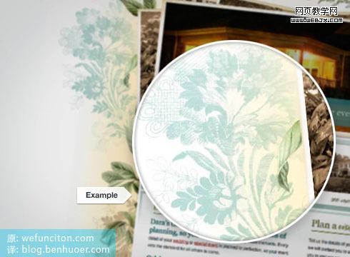 下面是一個充滿智慧的關於精妙植物細節的設計。網上還有很多更加栩栩如生的植物圖案,而且也非常漂亮,不過這個例子中,我關注的是背景上那些更清淡更微妙的細節。這個例子展現了細節的重要性,柔和的色彩,做舊的效果,喚起你對細節的感知,不過卻並不形成為主要焦點。