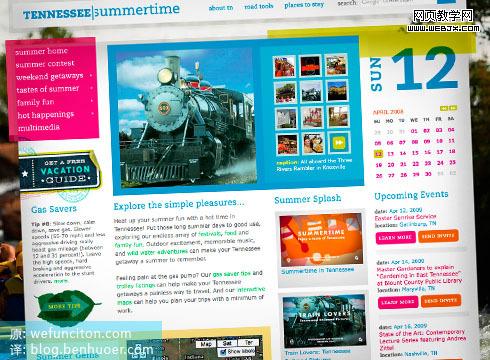 Summertime in Tennessee(田納西州夏日觀光) 是一個充滿活力的、明亮的,非常溫暖的站點。所有一切看起來都是為了推送夏日活動而設計。該站點使用了非常多不同色相的高飽和度色,但每一種顏色都切中要害,沒有一種是不適合主題的。高品質設計的色彩搭配必定與其要呈現的服務或產品密切關聯。好的設計並不總是需要費盡心力選一些出奇制勝的顏色,那些最明顯最該用的顏色反而能創造更好的效果。比如說 Hell Design(地獄設計),不用象征地獄的火紅色簡直說不過去。