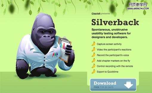 這個網站絕對是超贊的!我絕對可以在前面“反差原則”部分就可以把它作為一個好例子亮出來的,可它在“重復原則”部分也是一個好例子,因為它的界面風格和品牌部分都很明顯地應用了這個原則。仔細看它用香蕉來當做列表前面的圖標,還有頭部、腳部的森林插畫。