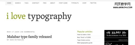 一個用來展示排版的網站如果在它自己的頁首就為我們展示了一個極好的排版效果,那讓人覺得多驚奇啊!我喜歡他們所用的字體,也喜歡他們良好的青色和深灰色搭配。