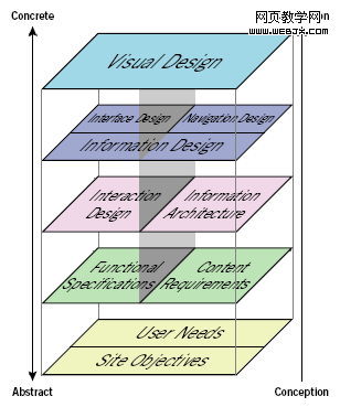 戰略層——范圍層——結構層——框架層——表現層。隨著層面的上升,我們要做的決策就一點一點的變得具體,並關系到越來越精細的細節
