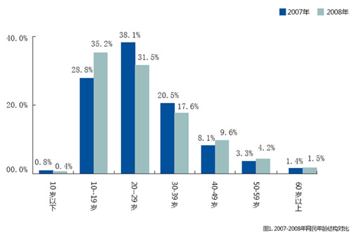 2008年中國互聯網網絡中心發布了第23次中國互聯網發展報告,闡述了中國互聯網的網民結構特征,從報告(圖1)中可以清晰看到近年來網民中成熟用戶群體比例不斷上升,增長率已經超過了網民總體的增長速度,顯現出我國網民結構越來越多元化的趨勢,在年齡上有不斷優化的趨勢。伴隨用戶結構的變化以及用戶的成長,相應產品設計也應順應局勢及時進行調整,這樣才能為用戶創造更多更豐富以及更加多元化的體驗感受,從而推動整體用戶結構的變化順應整個設計發展的趨勢。