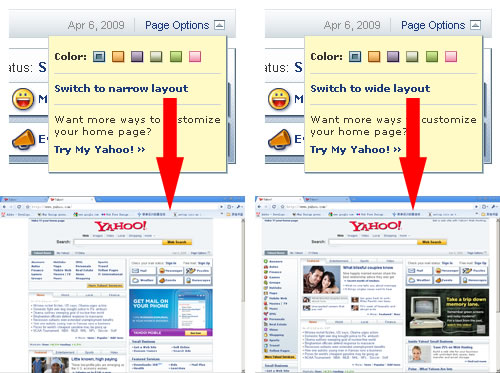 現實網站中,越重要的頁面模塊越多,排版難度也就越大。比如門戶網站首頁,我很少看到自適應的,大概是雅虎網站改版開了先河。分別使用narrow layout和wide layout兩種模式,適應800和1024px分辨率,根據客戶端請求分析再輸出,即在自定義基礎上實現了自適應。