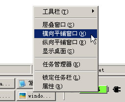 在windows系統任務欄空白處單擊右鍵,有如下圖的菜單,分別提供有“橫向平鋪窗口、縱向平鋪窗口”的功能,根據激活窗口個數按需切分屏幕。如果沒記錯的話,自win2000就已經用了,更早沒試過。雖然那會我們用的顯示器大些才17′,但在多窗口工作時確實方便。